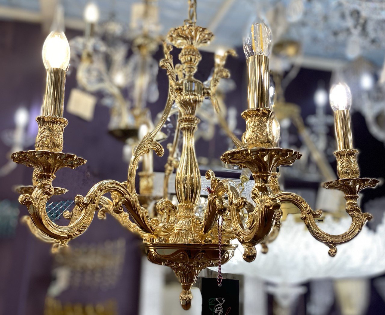 Подвесная люстра из Италии. Модель выполнена в классическом стиле и дышит настоящей аристократичностью. Изящные вензеля и изысканный декор покрыты 24-каратным гальваническим слоем золота. Это покрытие не только придает благородный блеск, но и обеспечивает долговечность, сохраняя безупречный вид на долгие годы. Люстра оснащена 6 рожками для ламп с цоколем Е14. Компактные и гармоничные габарты: диаметр 60см, высота 50см., делают эту модель идеальным решением для создания уютного и яркого освещения в помещениях среднего размера, таких как столовая или гостиная.